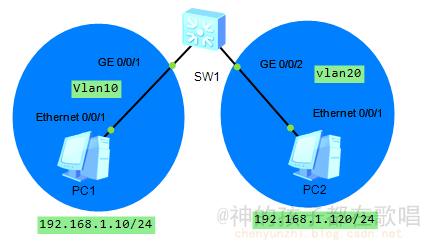 以 华为 eNSP(Enterprise Network Simulation Platform) 为例,介绍 VLAN 配置。