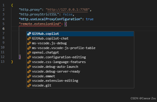 "http.proxy": "http://127.0.0.1:7768", #这里是你的代理地址