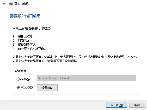 联想打印机2268w接入网络,如果和主机不在同一网段或通过打印路由器接入网络,在执行安装程序后,可能无法自动找到打印机。