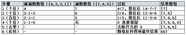 高精度减法通过将大数字拆分为单个数字的数组,从最低位(右)向最高位(左)依次计算,同时处理 "借位" 问题,最终得到结果。是模拟手工减法的竖式计算过程。