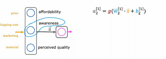 到目前为止,我们所有节点都在使用sigmoid激活函数,应用于隐藏层中以及输出层中,我们以这种方式开始是因为我们正在通过使用逻辑回归并创建大量逻辑回归单元,将它们串联起来以构建神经网络,但如果我们使用其他激活函数,我们的神经网络会变得强大得多,让我们来看看如何做到这一点,回想一下上几节我们学习的需求预测示例,在给定价格,运输成本情况下,营销材料,我们会尝试预测某件商品是否很实惠,如果有很好的认知度和材质,并以此试图预测它是否是畅销商品,但假设了认知度可能是二元的,要么人们知道,要么不知道,但在实际情况下,顾客对于我们的衣服的认知度不是二元的,他们可能有一点了解,稍微了解,非常了解,或者已经是如火如荼的畅销品,所以,与其将认知度建模为二元数字,不如我们将认知度建模为0和1之间的一个数字,认知度应该是一个非负数,从0到非常了解,所以,之前我们曾用这个方程计算第二个隐藏单元的激活值