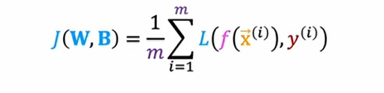 在这个表达式,我们用J(W,B)来表示成本函数,成本函数是神经网络所有参数的函数,我们可以把W看成W1,W2,W3,B包括B1,B2,B3。所以如果我们在优化关于W和B的成本函数,我们会尝试优化神经网络中所有的参数