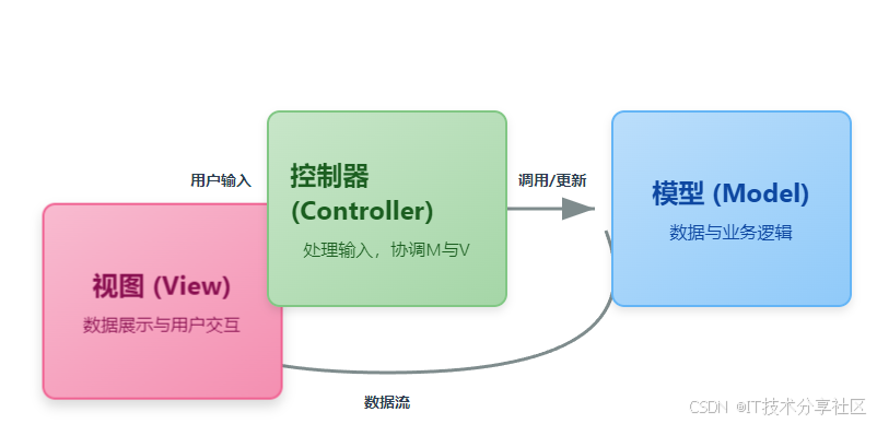 MVC模式将应用程序分为三个核心组件:模型(Model)、视图(View)和控制器(Controller)。这种分离确保了业务逻辑、用户界面和用户输入的独立发展,大大增强了代码的可维护性和可测试性。