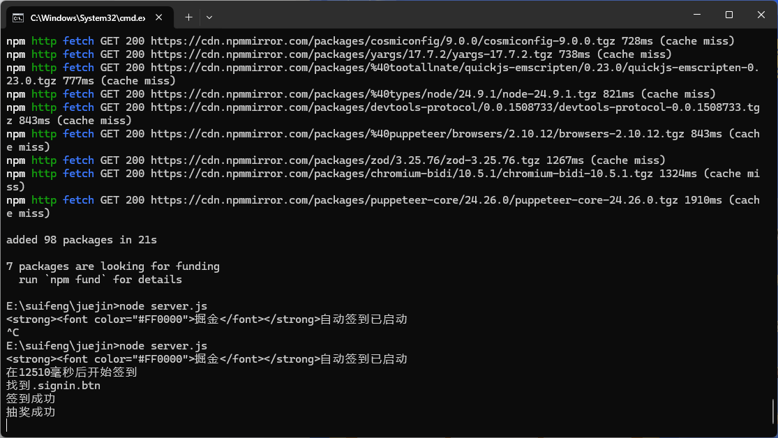 console.log('<strong><font color="#FF0000">掘金</font></strong>自动签到已启动');