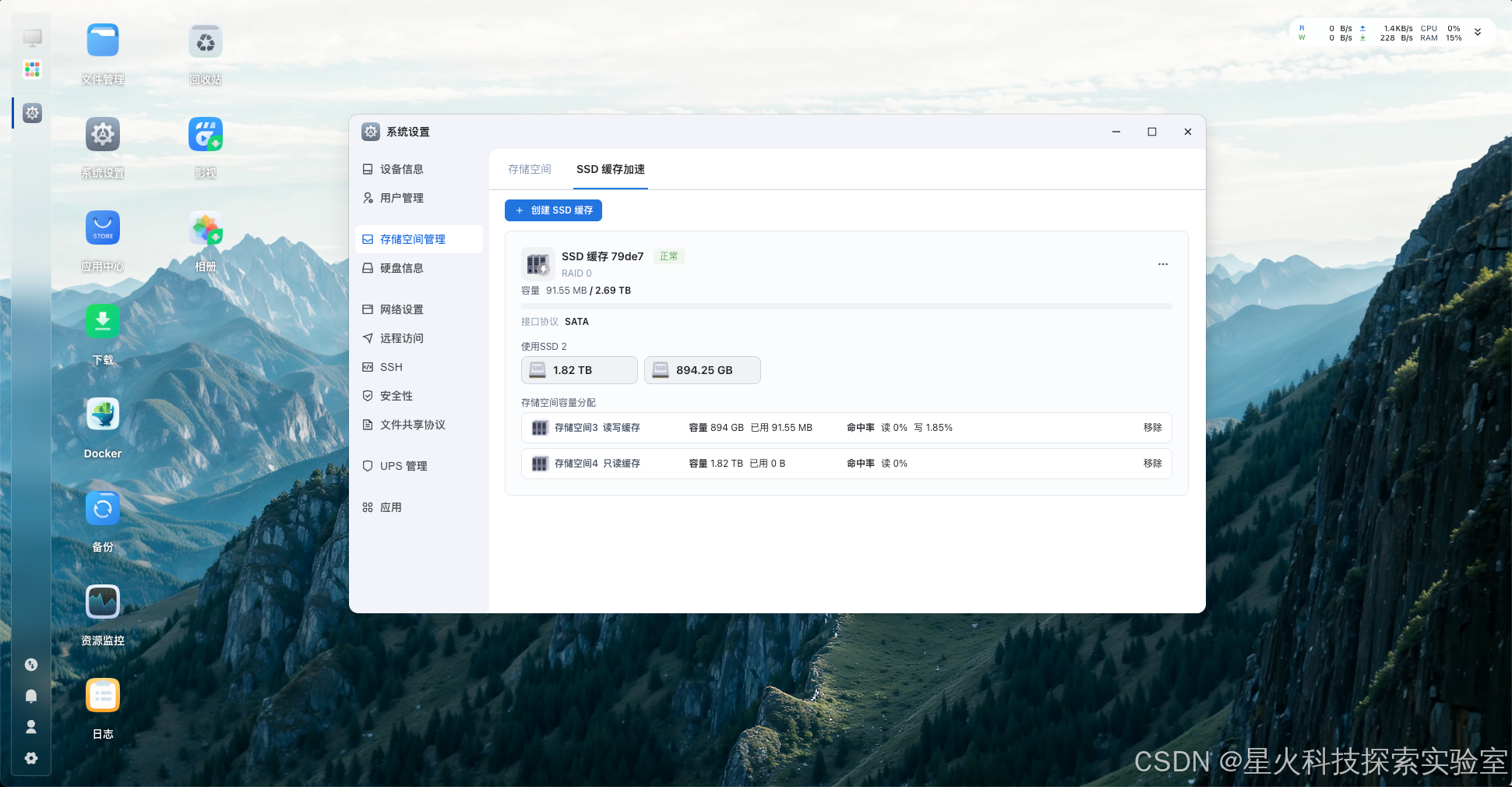 多存储空间分配:一个SSD缓存可以分配给多个存储空间。创建时若有剩余容量,之后可继续分配给其他存储空间。