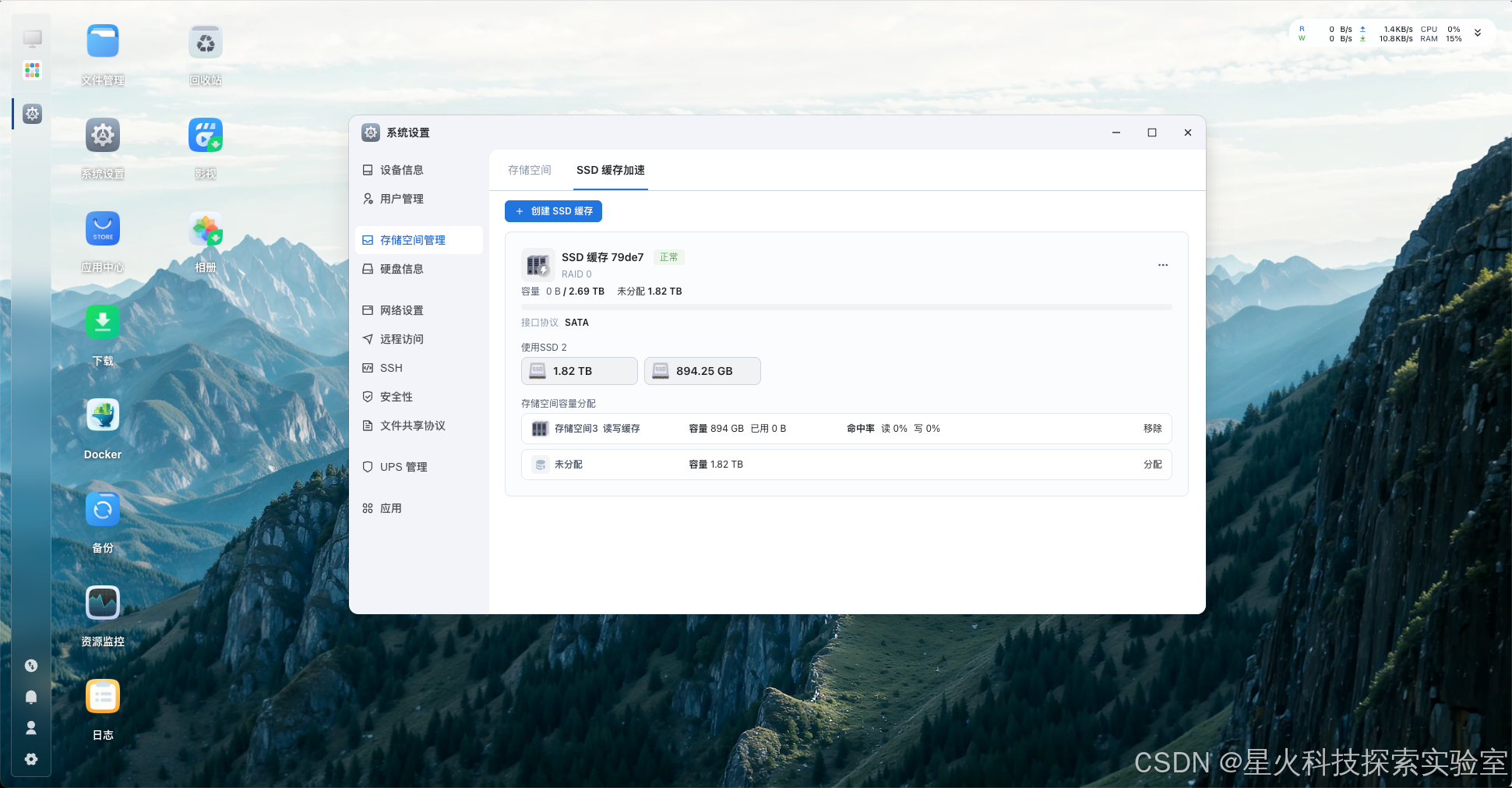硬件要求:创建SSD缓存需要至少一块未被使用的内置固态硬盘,容量需大于10GB。系统盘的剩余空间若满足条件,也可用于创建SSD缓存,但需注意这可能会增加系统盘的读写频率,缩短其使用寿命。