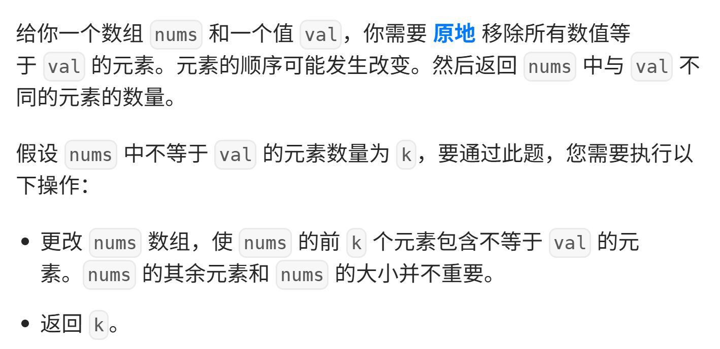nums[src] != val:将nums[src]赋值给nums[dst],dst后移一位(指向下一个待填充位置)。- 若
