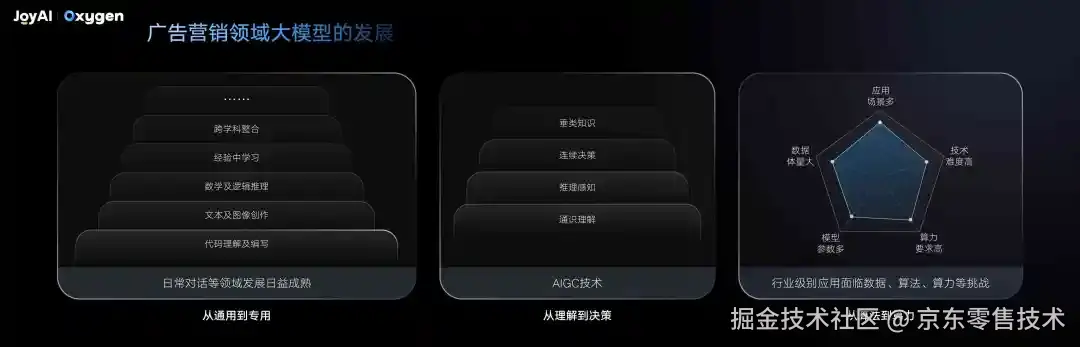 很荣幸和大家一起探讨一个核心话题 ------ 大模型时代的广告营销变革与实践,而我们今天的主角,就是京东自主研发的广告营销大模型体系。可能很多朋友会好奇,大模型到底能给广告营销带来什么?是效率的微小提升,还是模式的彻底重构?接下来我会从技术发展、产品落地到行业实践,带大家全面看清这场变革的全貌,也让大家感受 JoyAI Oxygen 如何把 "复杂的技术" 变成 "好用的工具",把 "营销的难题" 变成 "增长的机遇"。咱们现在就正式开始!