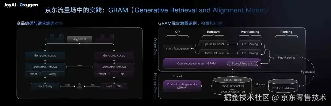 更重要的是,GRAM 不是 "一次性匹配",它还有 "近线系统(Nearline System)":会通过用户反馈(比如点击、购买)不断更新 "商品编码库",让匹配越来越准。比如用户搜 "轻薄防晒衣" 但买了带冰感的,下次就会优先推冰感材质的 ------ 真正实现了 "意图识别、检索、排序、机制" 几者融合,让服务既快又准。