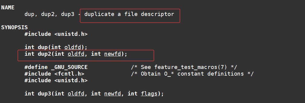 我们这里主要介绍dup2