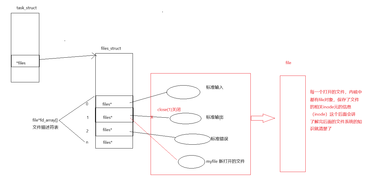 我们发现:当我们关了文件描述符0后,在files_struct数组当中,找到当前没有被使用的最小的一个下标,作为新的文件描述符。这结果也符合我们的分配规则。