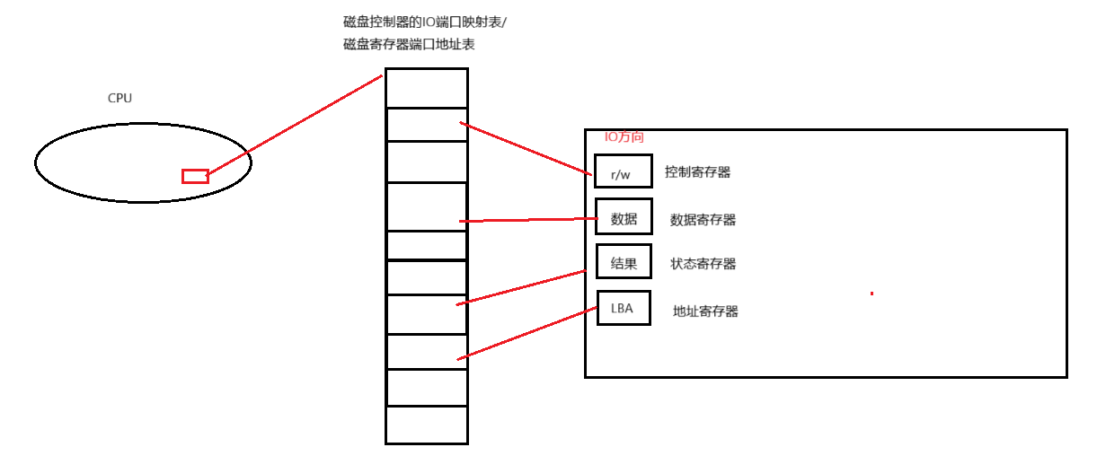 IDE(并行ATA):采用并行总线,数据总线位宽为16位,并非32位。它通过多个I/O端口(如0x1F0~0x1F7)与CPU交互,这些端口对应磁盘的控制、数据、地址等寄存器,软件通过读写这些端口来操作磁盘。