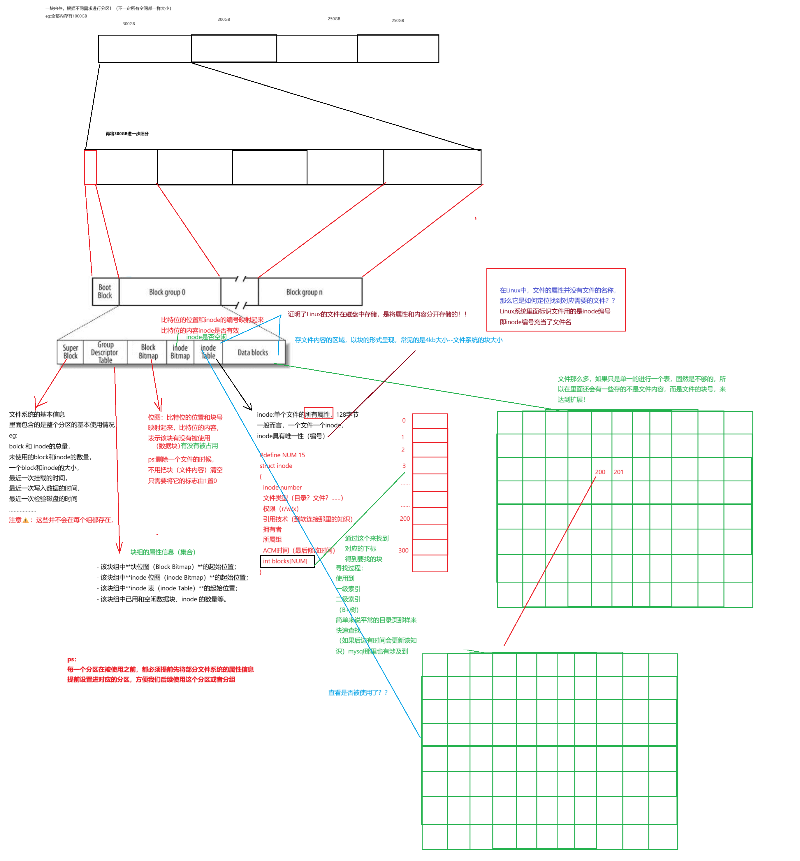 因此,Linux的文件在磁盘中存储,是将属性和内容分开存储的