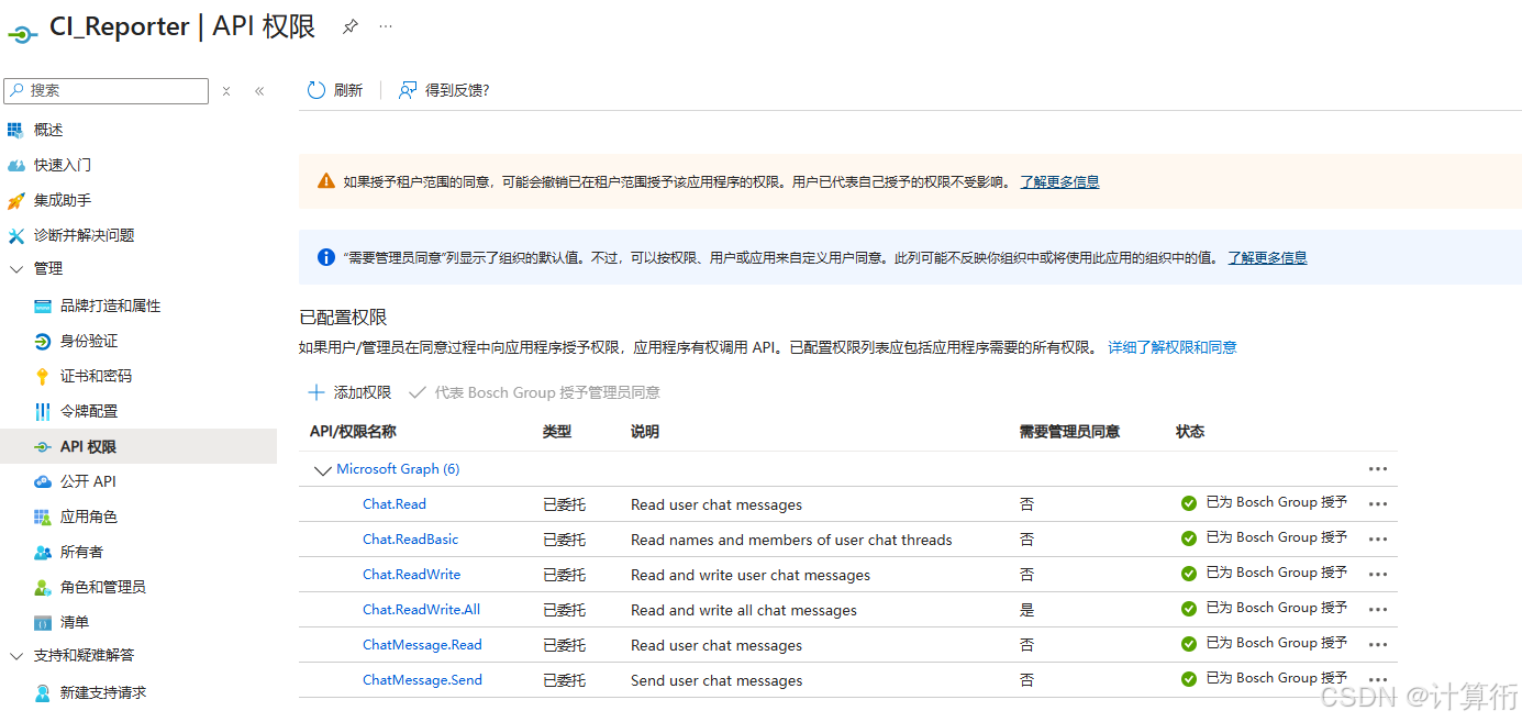 2. 向Teams IT管理员申请可以向Teams发送,读写,接收的API权限