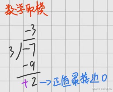 只有 负 % 正 的负数取模 时 结果会不同 (计算机为负、数学为正)