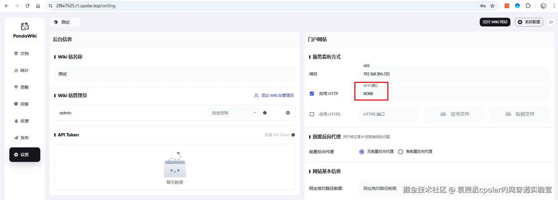 3 使用cpolar穿透PandaWiki以支持公网访问
