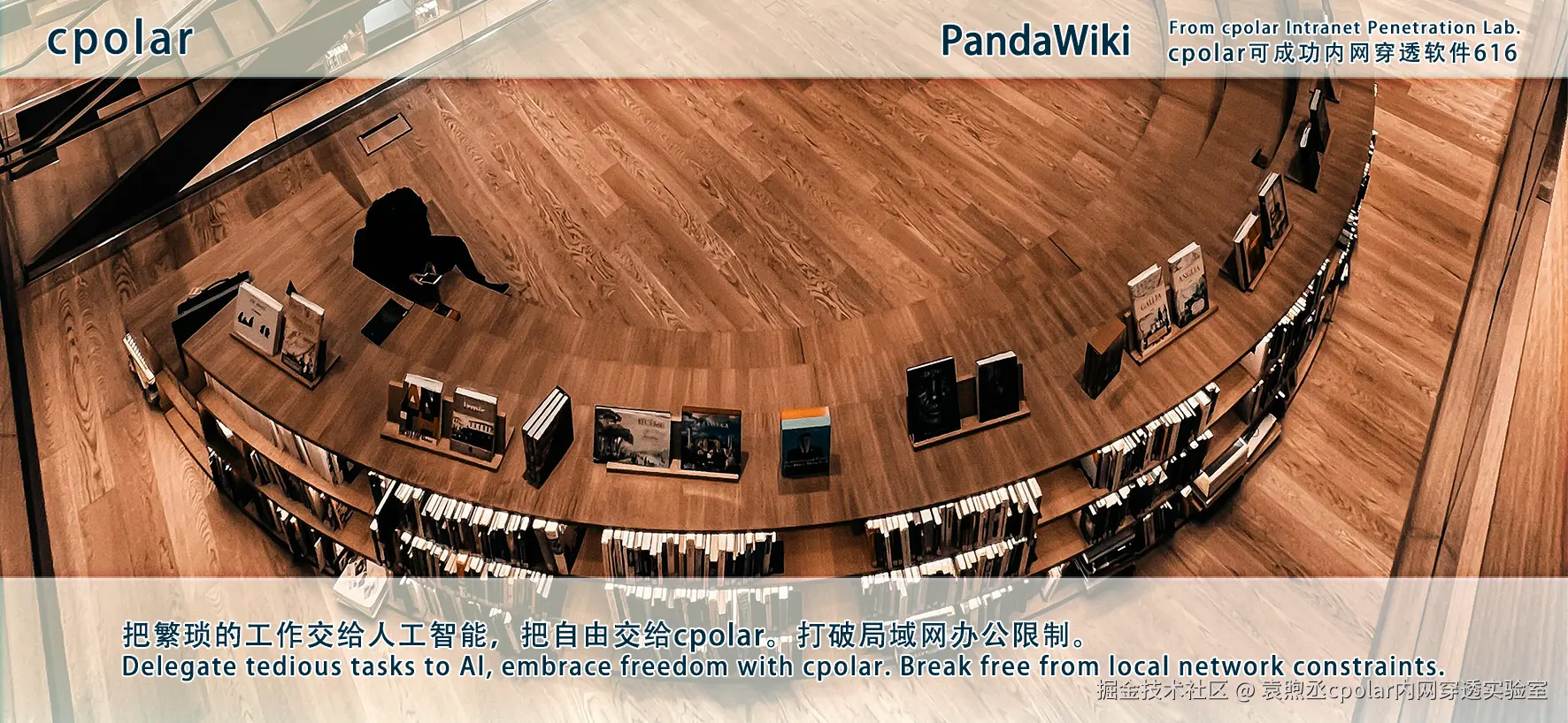 通过前面的步骤,你已经成功搭建了一个功能强大的本地 AI 知识库(PandaWiki)。但是,你是否遇到过这样的困扰:当你在公司、咖啡厅或者出差时,想要远程访问家里的 PandaWiki,却发现只能通过局域网访问?或者当同事/朋友想要体验你的知识库与 AI 问答时,却因为网络限制而无法分享?这些场景正是内网穿透技术要解决的核心痛点。本章将带你使用 cpolar 内网穿透工具,让 PandaWiki 突破局域网限制,实现全球任意地点的安全远程访问,真正实现"知识库随身携带"的终极体验。