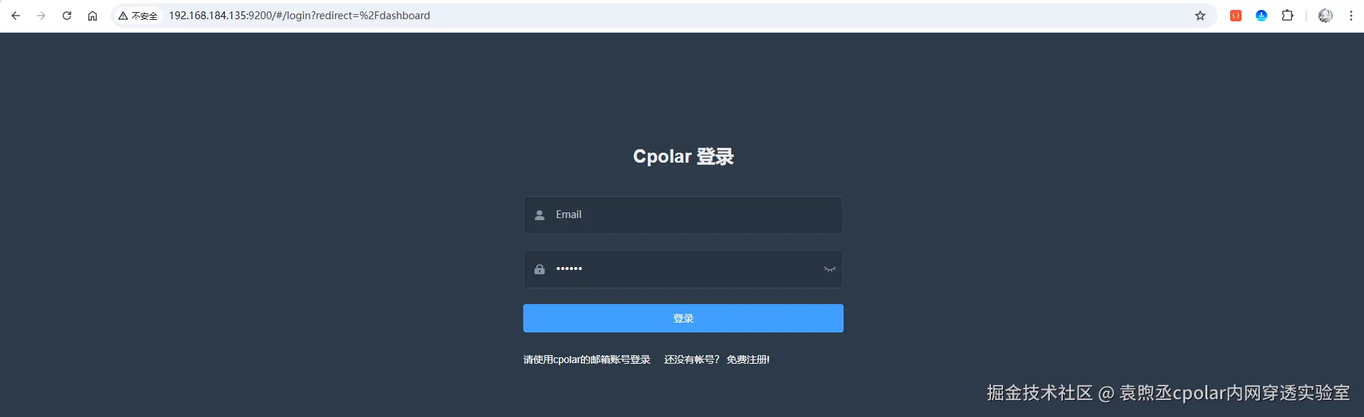 cpolar安装和成功启动服务后,在浏览器上输入飞牛云主机IP加9200端口访问Cpolar管理界面,使用官网注册的账号登录,登录后即可看到配置界面,接下来在web界面配置即可: