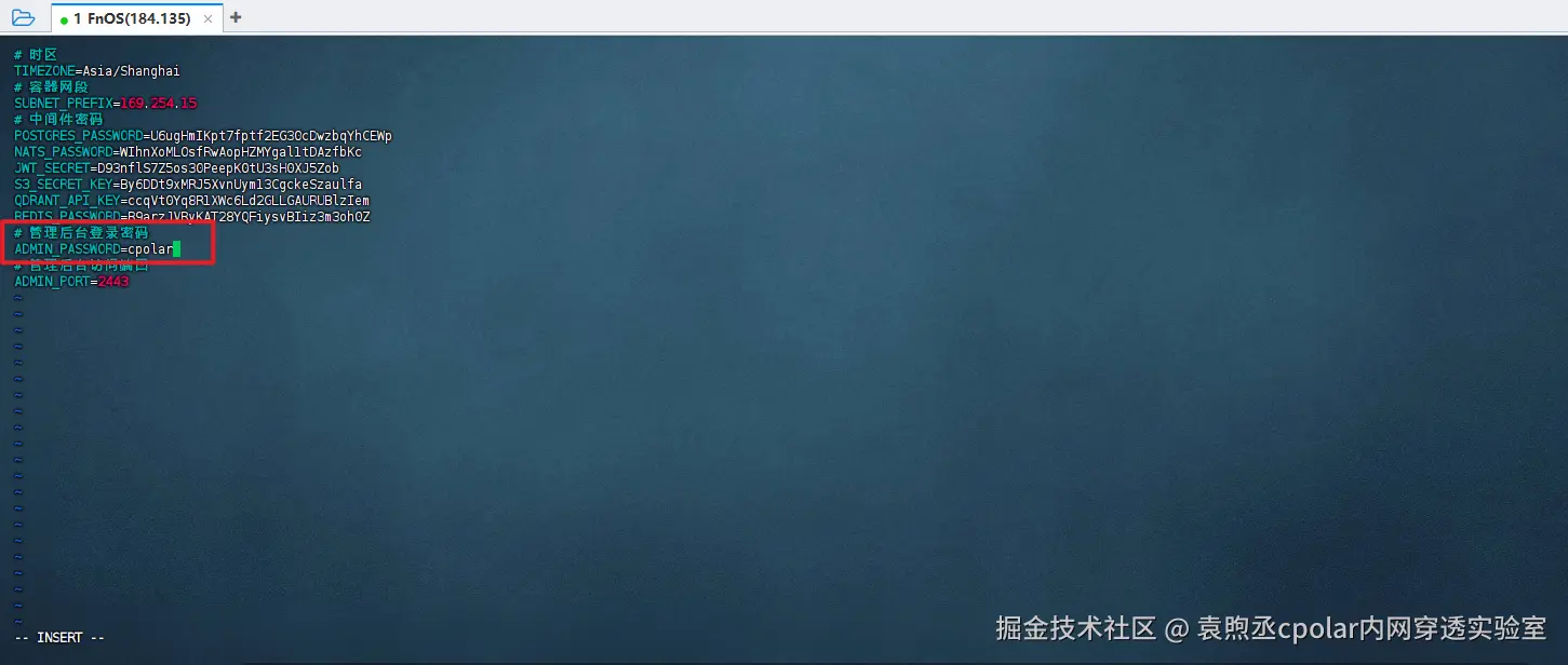 进入文件后,键盘按I进入编辑模式,然后修改管理后台登录密码栏的密码,修改完成后,按Esc,输入英文的:wq回车即可保存退出: