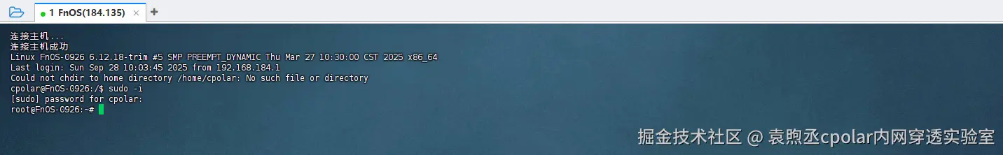 首先,在finalshell的命令窗口中执行如下命令(非root用户需要输入飞牛云nas的密码):