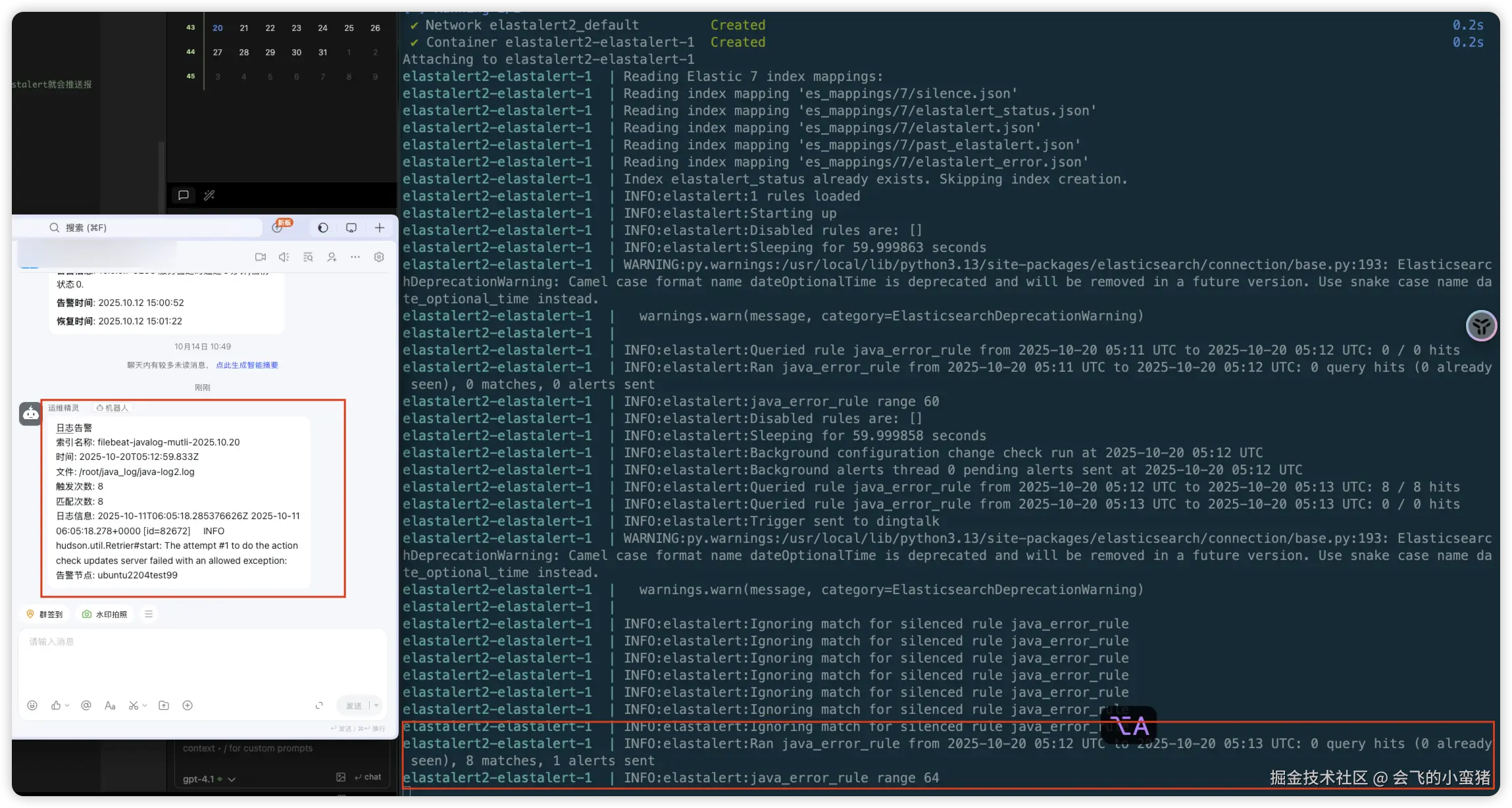 结合elastalert对ELK中的异常日志进行监控,并进行告警。这个告警对日志的可控性要求还是比较高的,不然容易被消息轰炸!
