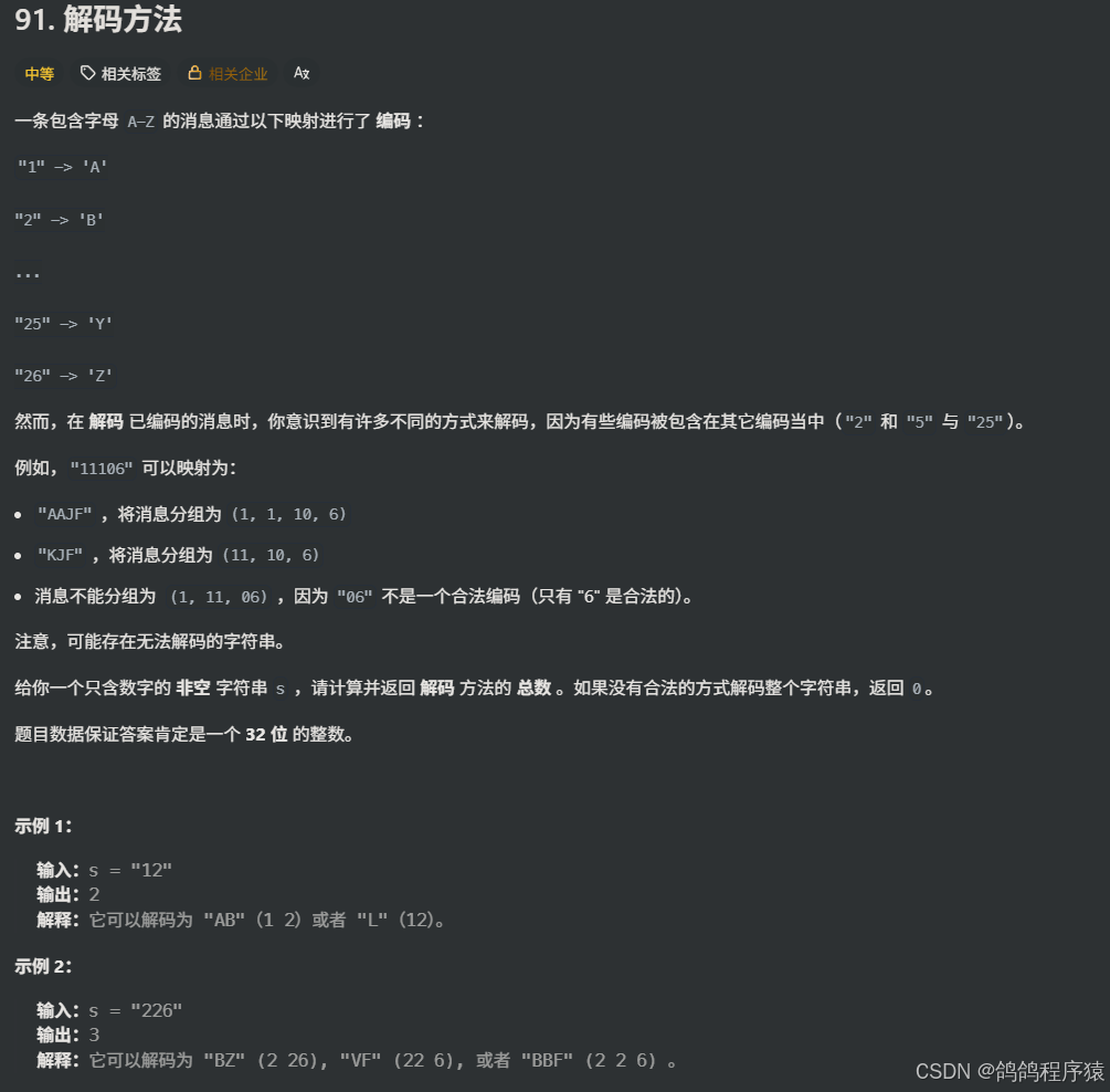 题目链接:91.解码⽅法