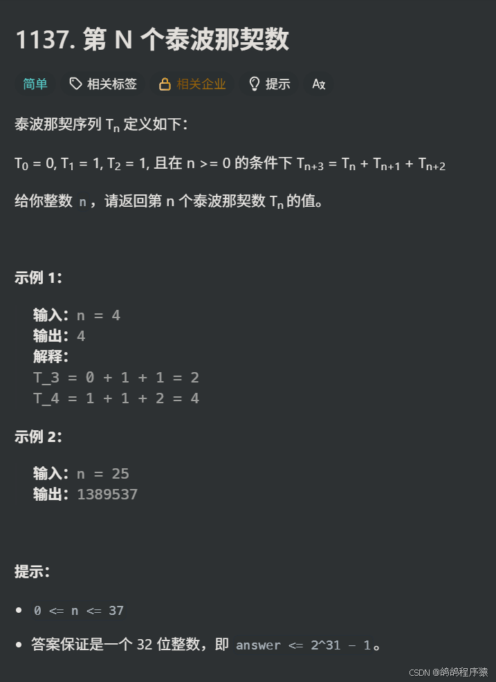 - 二、第N个泰波那契数