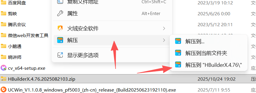 第五步:选择下载好的压缩包右键点击解压到带有名字的文件夹,或者解压到你指定的空文件夹