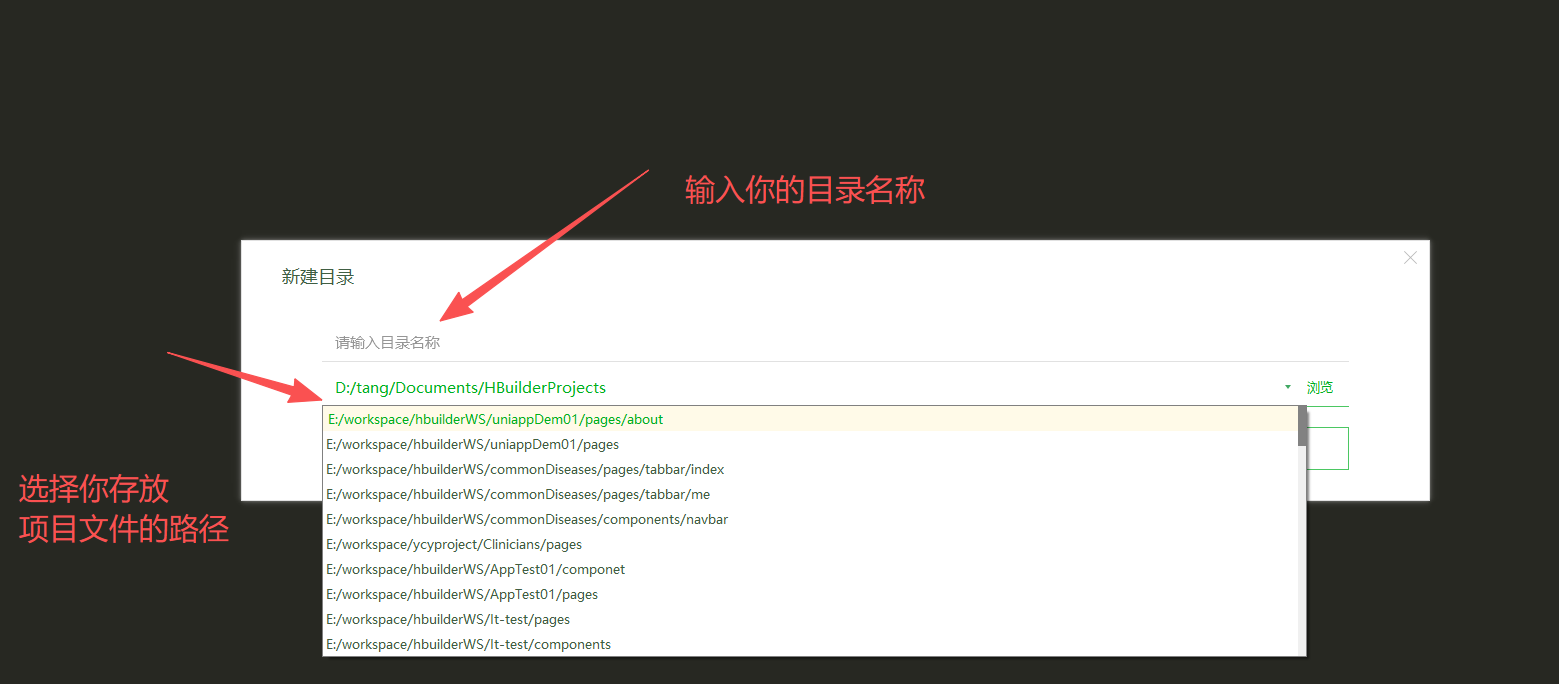 第九步:输入你的目录名字和选择你存放目录项目文件的路径