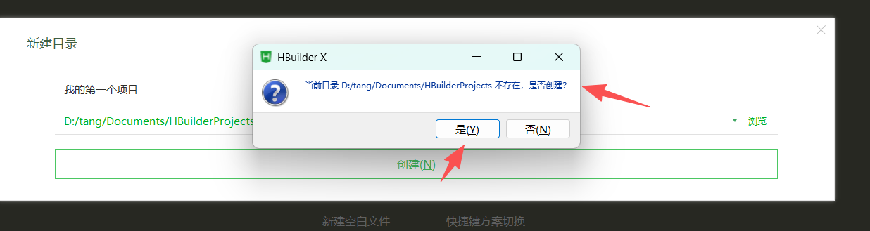 要注意,如果你选择的路径不存在他会提示你是否创建,如果存在会创建成功,不存在你也可以让它帮你创建