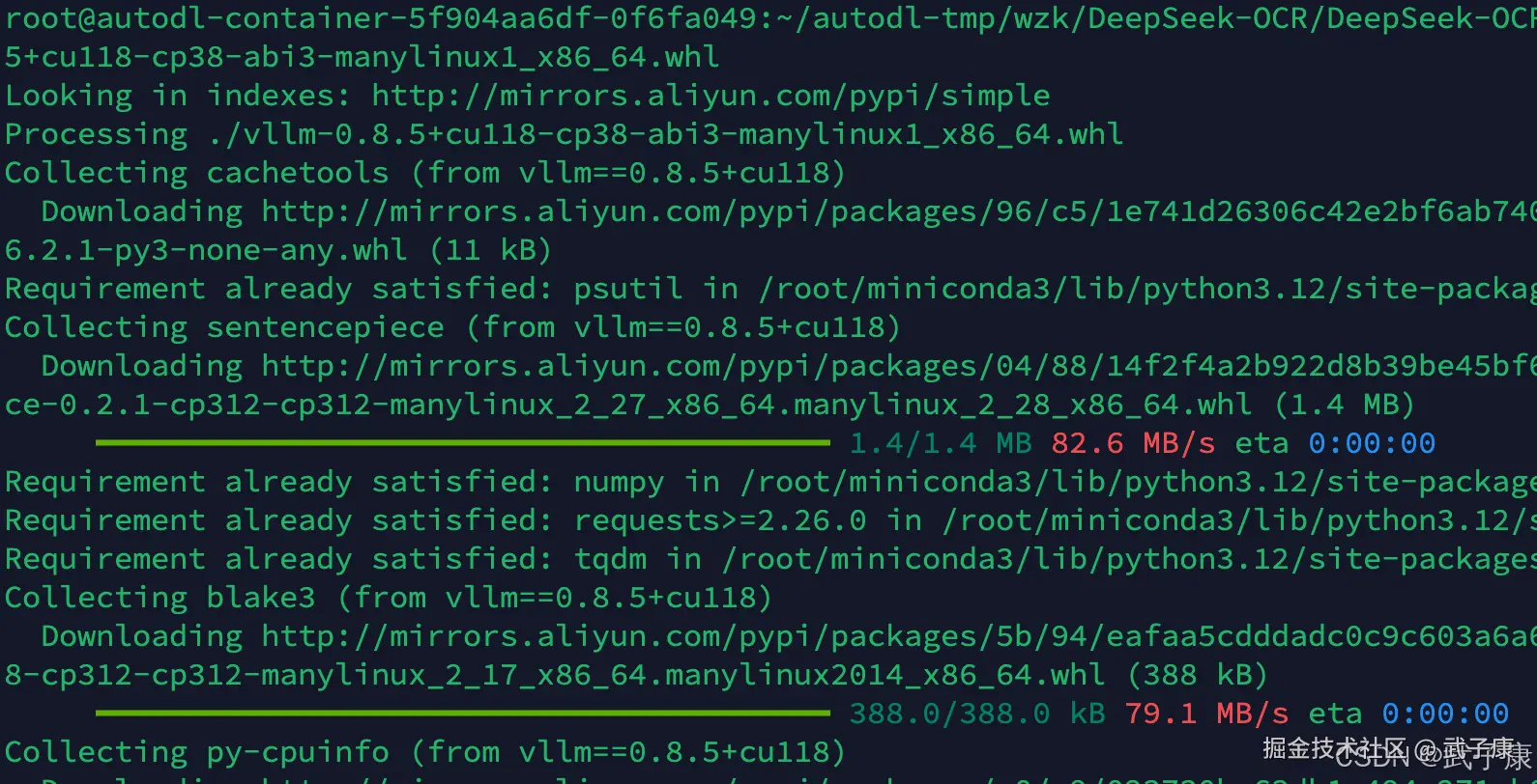 注意官方做了提示:(if you want vLLM and transformers codes to run in the same environment, you don't need to worry about this installation error like: vllm 0.8.5+cu118 requires transformers>=4.51.1) 如果你希望 vLLM 和 transformers 的代码在同一个环境中运行,那么你不需要担心类似下面的安装错误: vllm 0.8.5+cu118 requires transformers>=4.51.1 意思是:只要它们能共存并正常运行,这个安装提示不是严重问题,可以忽略。