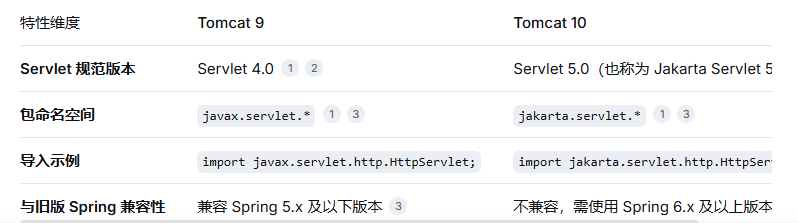 Tomcat 10 和 Tomcat 9 在引入和使用 Servlet 的方式上有一个关键区别:包名发生了变化 。这主要是为了遵循从 Java EE 到 Jakarta EE 的命名空间转移。