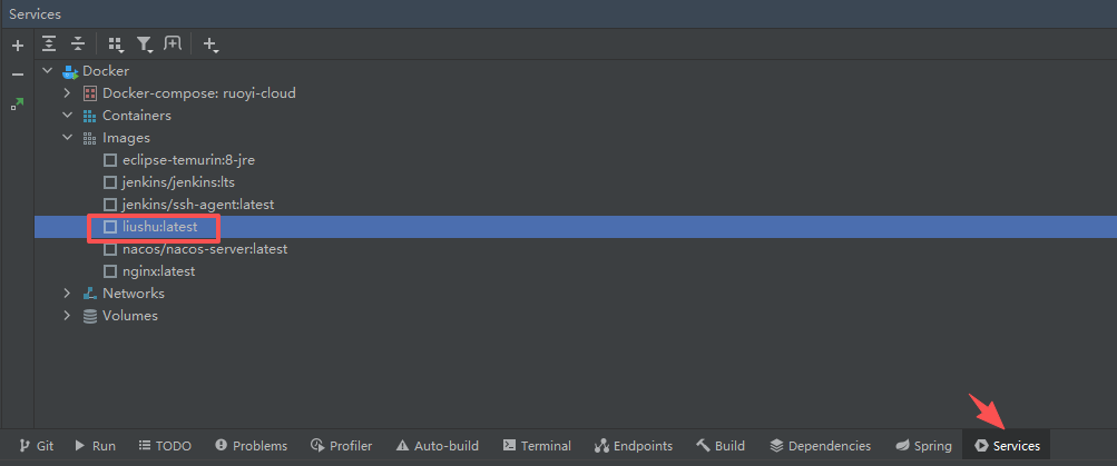执行完成后,在 IDEA 的 Docker 面板 中即可看到 liushu 镜像。