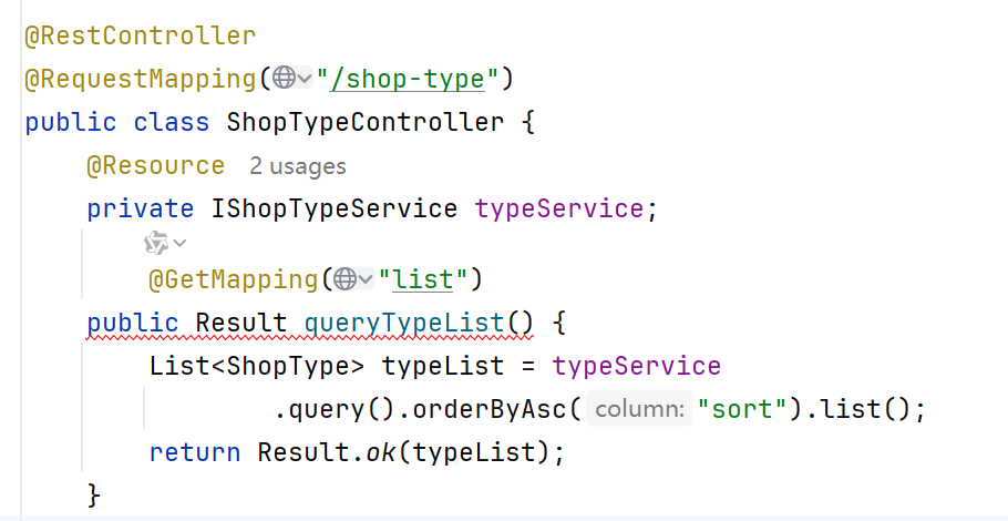 List<ShopType> shopTypeList = query().orderByAsc("sort").list();