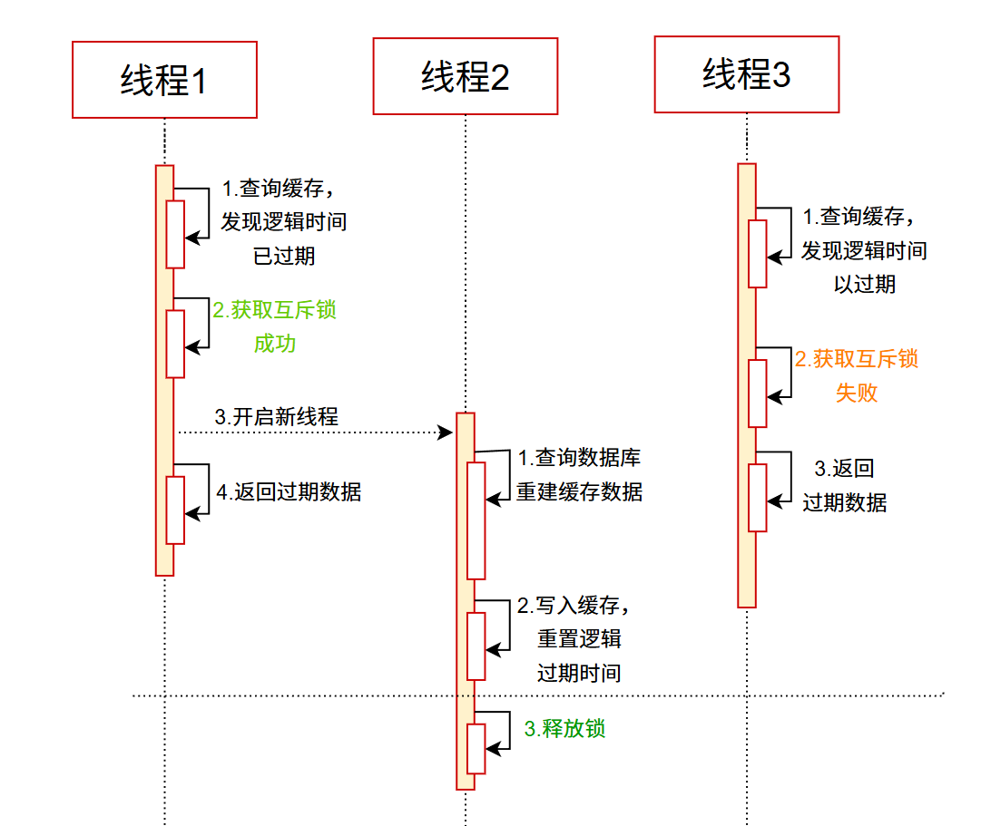 开启一个线程池,命名为CACHE_REBUILD_EXECUTOR,如果直接创建一个线程用来缓存重构的话,后续线程的销毁和再次重建需要消耗更多性能。