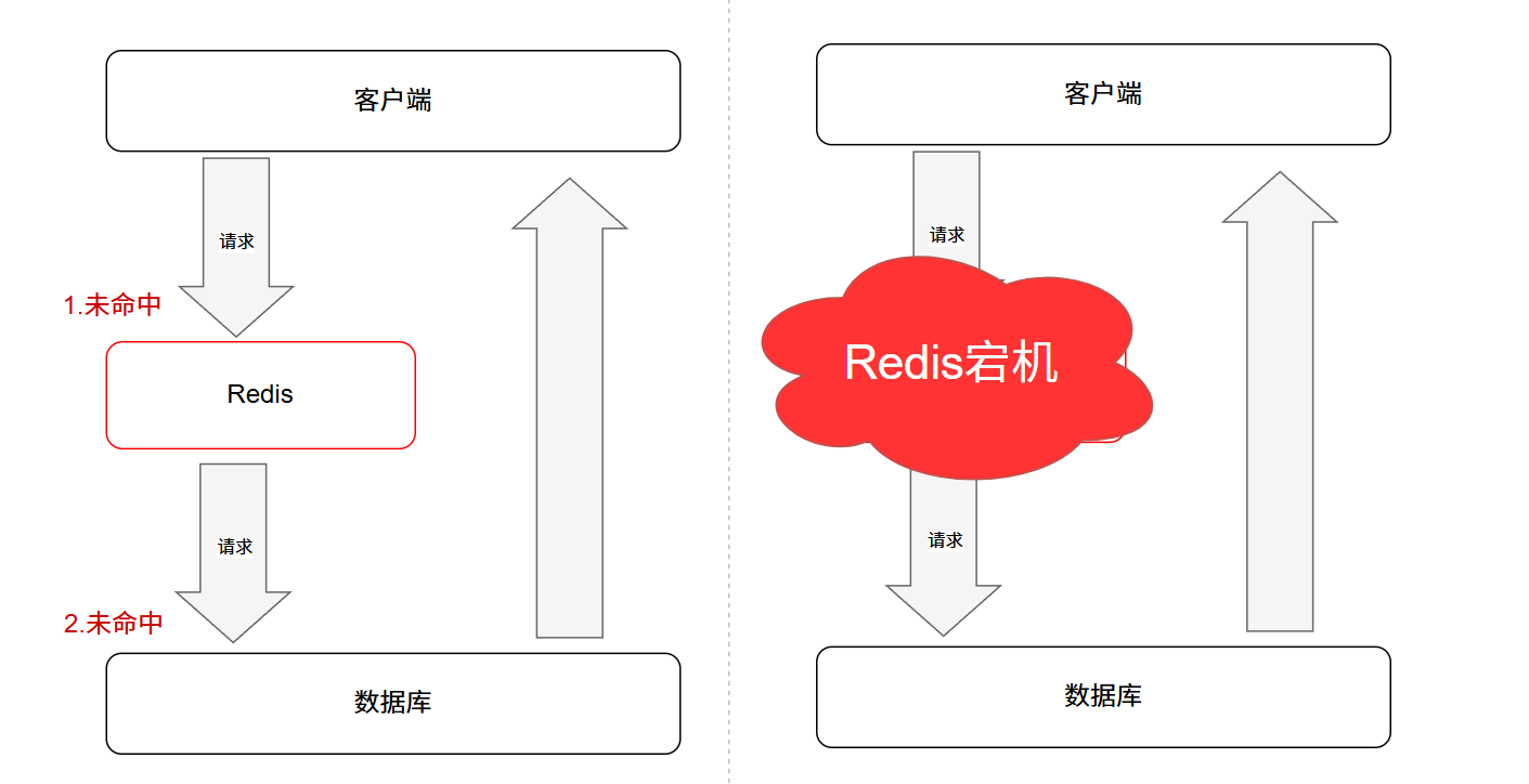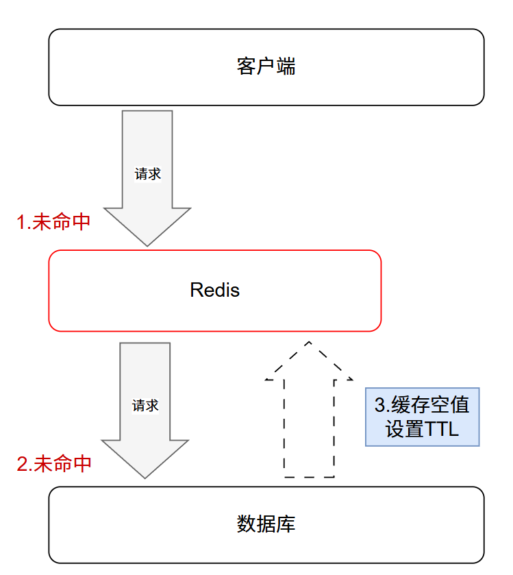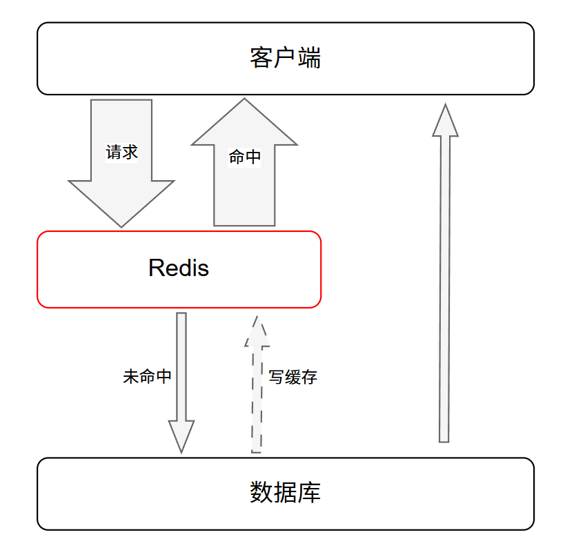 接下来我们添加一个应用层缓存,利用Redis的高吞吐性,我们可以将Redis作为一个缓存区,客户端先请求Redis中的数据,只有当Redis中不存在该数据的时候才会到数据库中查找,并且数据库查到了数据后还需要将该数据写入缓存:
