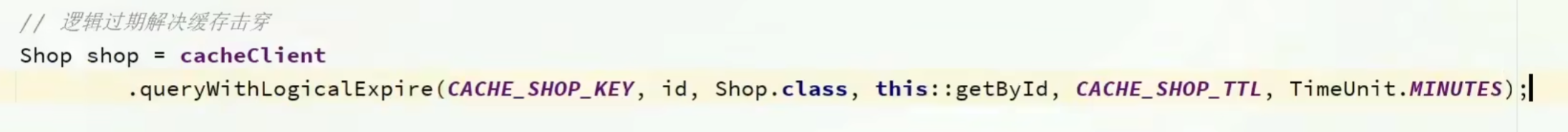 public<R,ID> R queryWithLogicalExpire(String keyPrefix,ID id, Class<R> type,Function<ID, R> dbFallback, Long time, TimeUnit unit) {