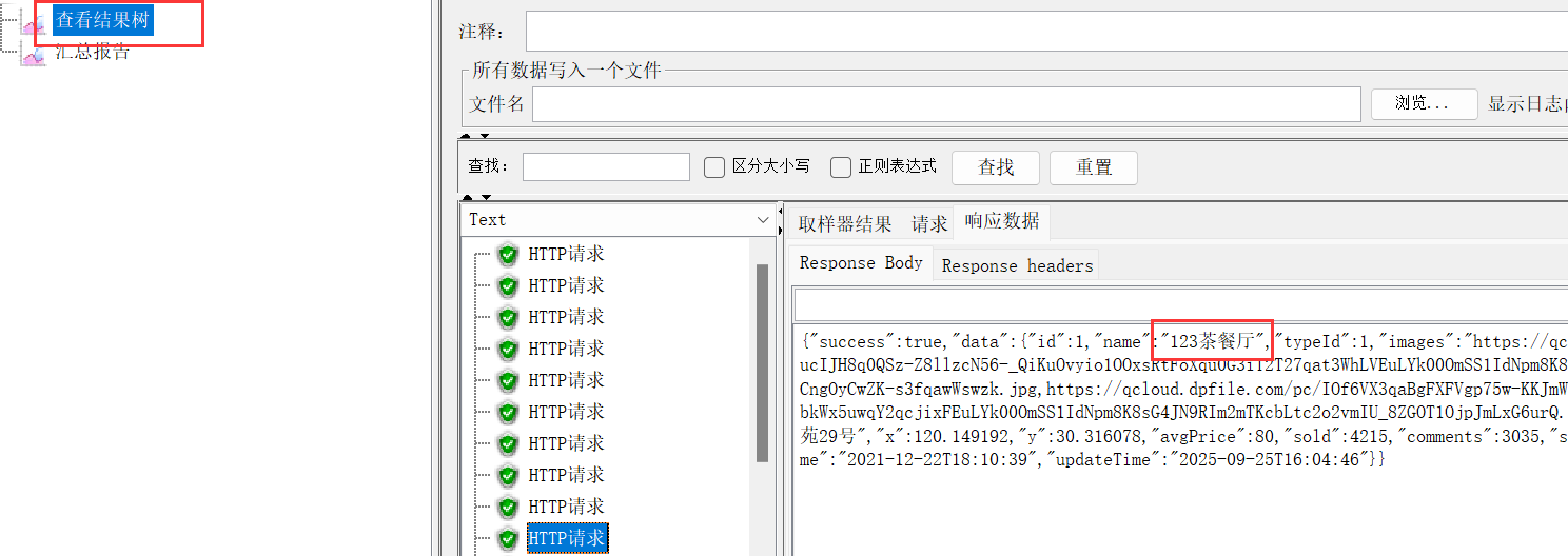 3.接着使用JMeter多线程测试,然后在结果图中可以看到详细信息: