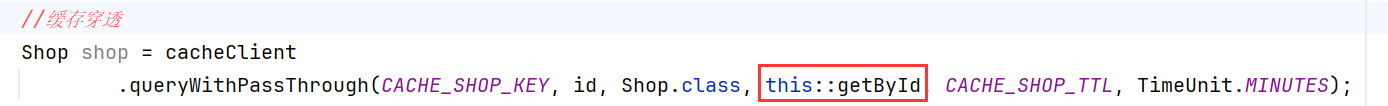public<R,ID> R queryWithPassThrough(String keyPrefix, ID id, Class<R> type, Function<ID,R> dbFallback, Long time, TimeUnit unit) {