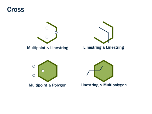 | intersects | crosses | overlaps |