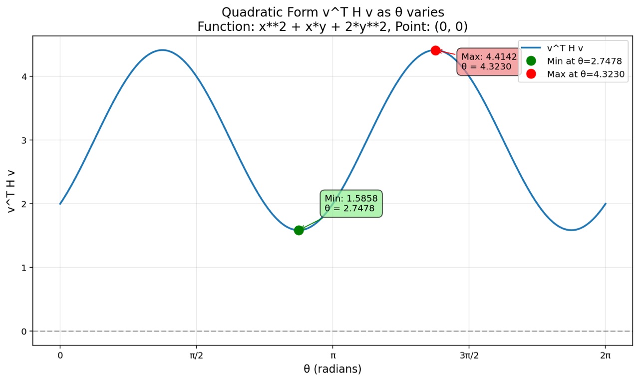 我们可以取 v₁ = 1,因此特征向量近似为 (1, 2.414),指向曲率最大的方向。