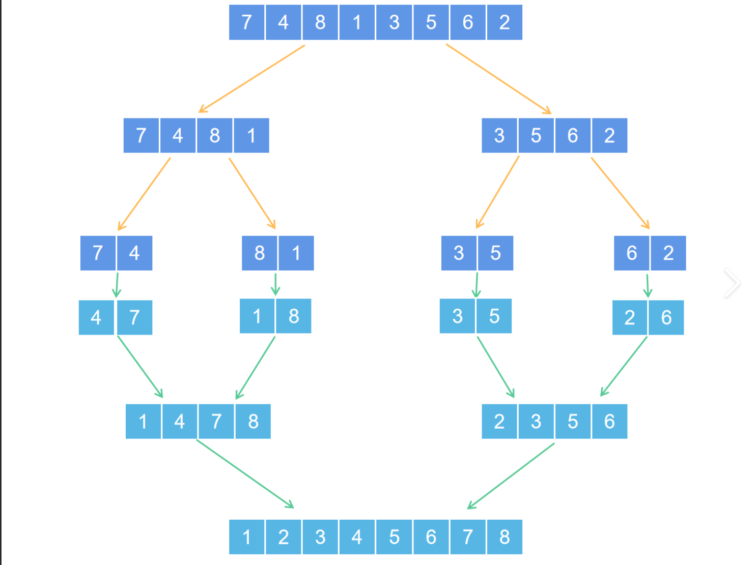 int[] arr = {3, 1, 4, 2, 7, 5, 8, 6}; // 初始数组