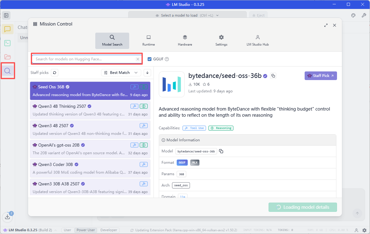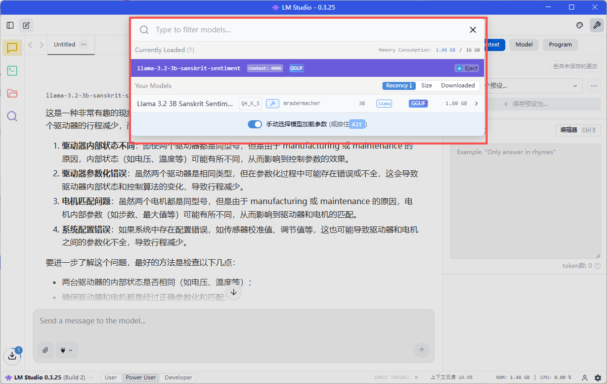 或者在modelscope或HuggingFace下载.GGUF文件//下载好的文件放在.lmstudio\models\lmstudio-community文件夹下。