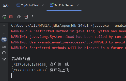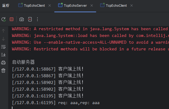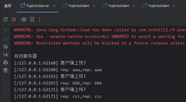 TcpEchoClient client = new TcpEchoClient("127.0.0.1",9090);