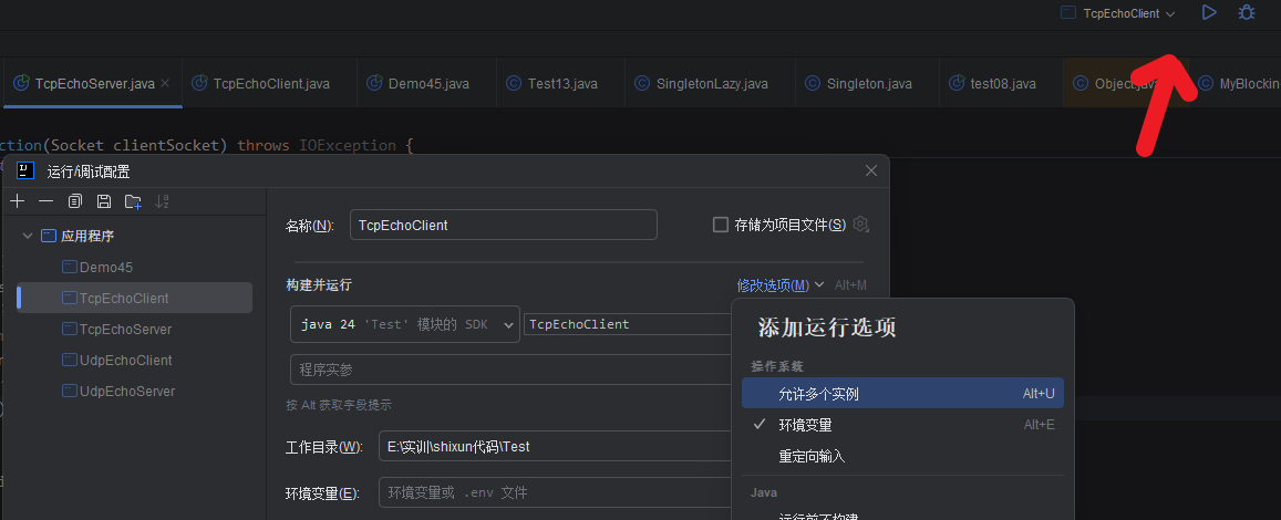 Idea默认只允许启动一个进程 如果你启动第二个进程 它会把第一个进程关闭 需要我们手动设置