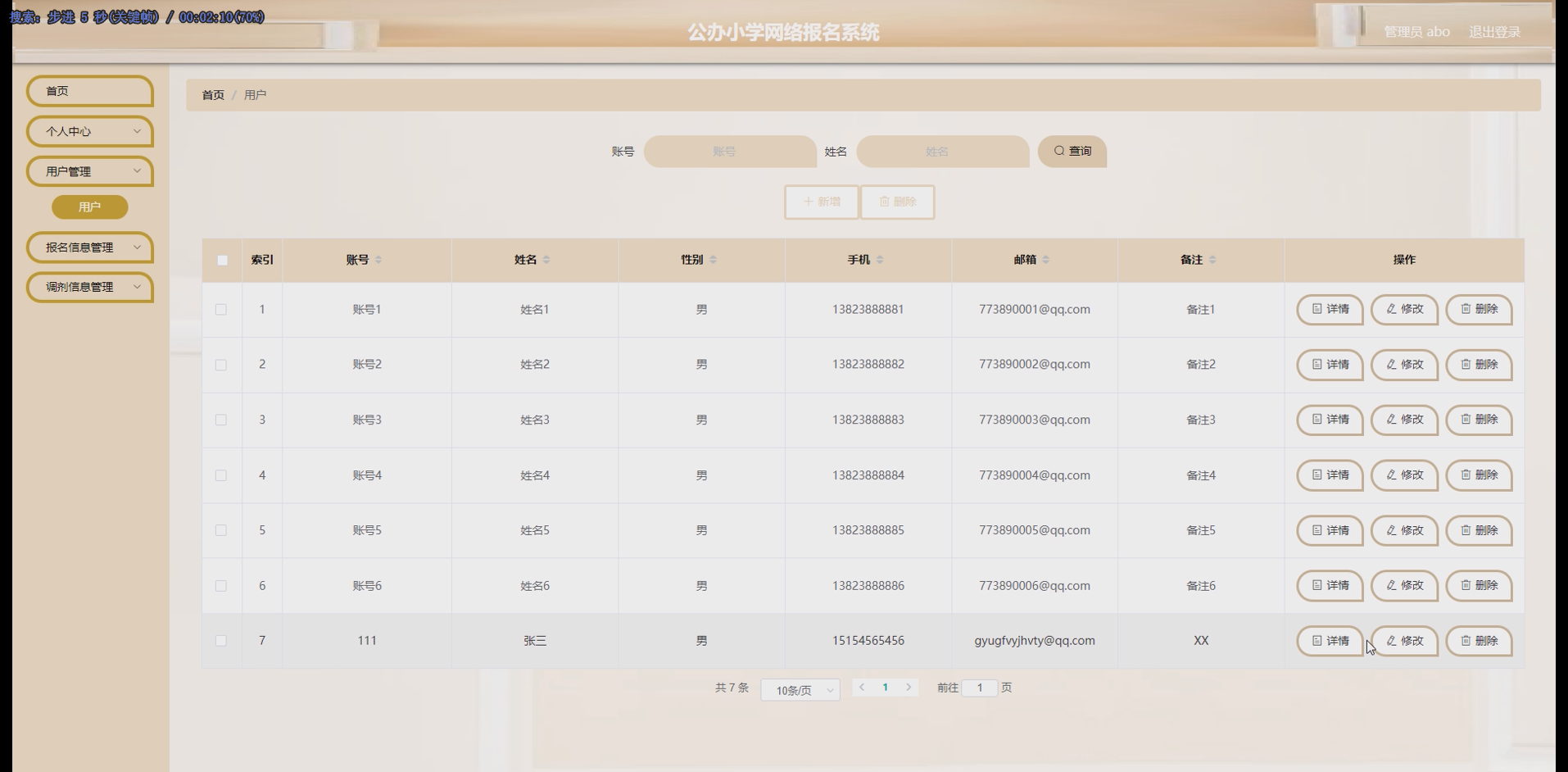 系统项目功能有:用户,报名信息,调剂信息,招生信息,学区分类