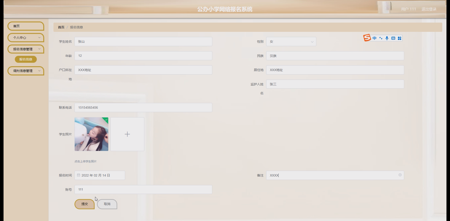 - 报名信息管理模块:家长可在线填写学生报名信息,上传相关证明材料(如户口本、房产证等);学校管理员可查看报名列表,对报名信息进行审核(通过 / 不通过),并反馈审核意见;系统支持报名信息的查询、修改、删除等操作。