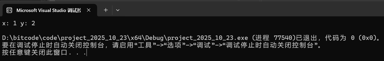 printf("x = %d y = %d\n", ptr->x, ptr->y);