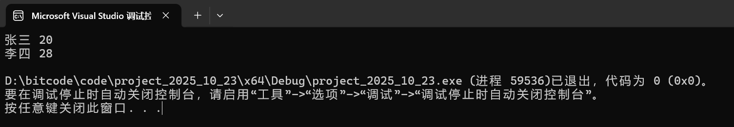 那么在初步了解了结构体之后,我们就可以介绍一下结构成员访问操作符了,我们首先来介绍一下结构体成员的直接访问方式,这种方式是通过点操作符 . 来实现的,它能够接受两个操作数。我们键入如下代码来测试一下: