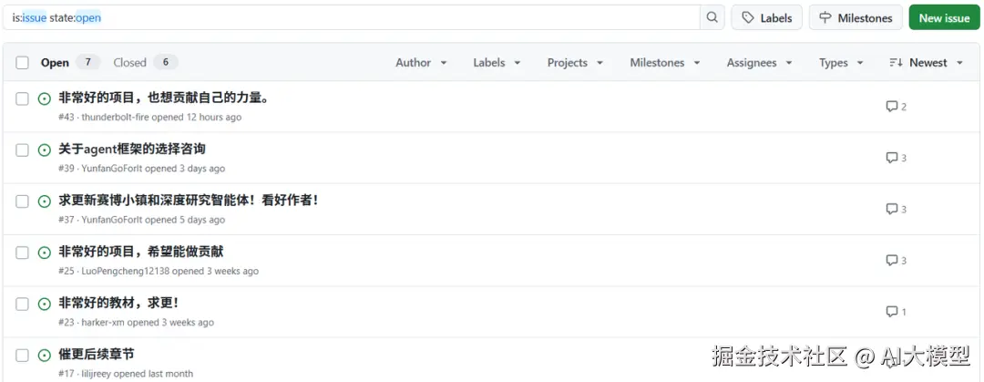 智能体是一个飞速发展且极度依赖实践的领域。为了获得最佳的学习效果,我们在项目的code文件夹内提供了配套的全部代码,强烈建议你将理论与实践相结合。请务必亲手运行、调试甚至修改项目里提供的每一份代码。欢迎你随时关注 Datawhale 以及其他 Agent 相关社区,当遇到问题时,你可以随时在本项目的 issue 区提问。